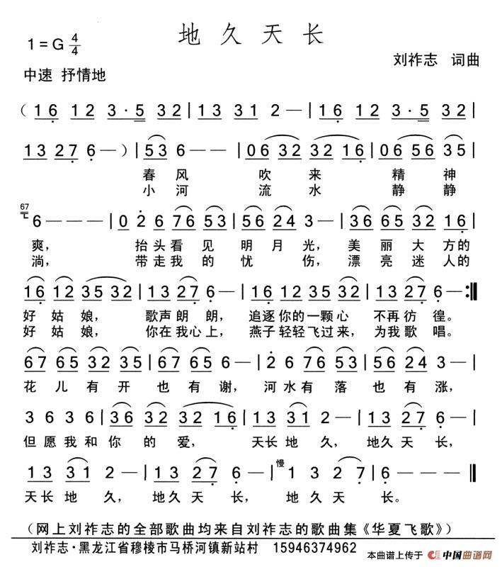 地久天长简谱 焦随东词 张瑞华曲 秋叶起舞个人制谱园地 中国曲谱网