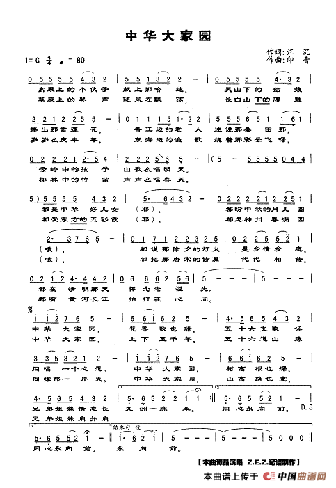 中华大家园简谱 汪沉词 印青曲 Z.E.Z.个人制谱园地 中国曲谱网