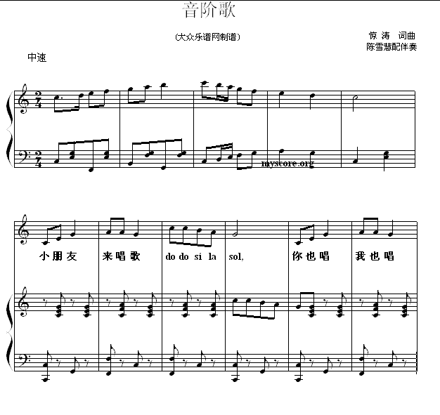 音阶歌简线混排 惊涛词 惊涛曲 少儿曲谱 中国曲谱网