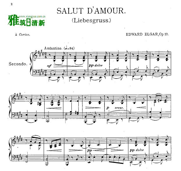 埃加尔 爱的礼赞四手联弹钢琴谱 原版正谱