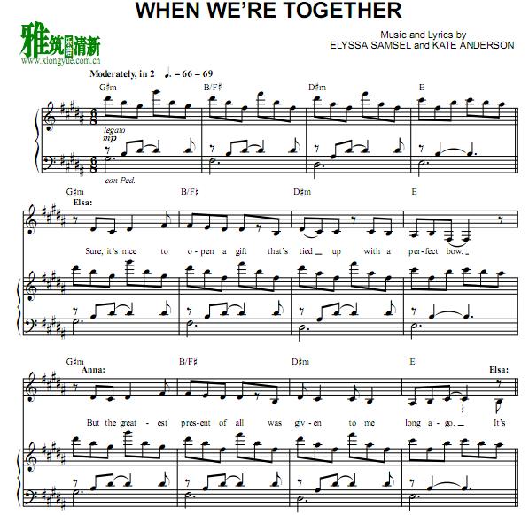 雪宝的冰雪大冒险 When We re Together钢琴伴奏谱