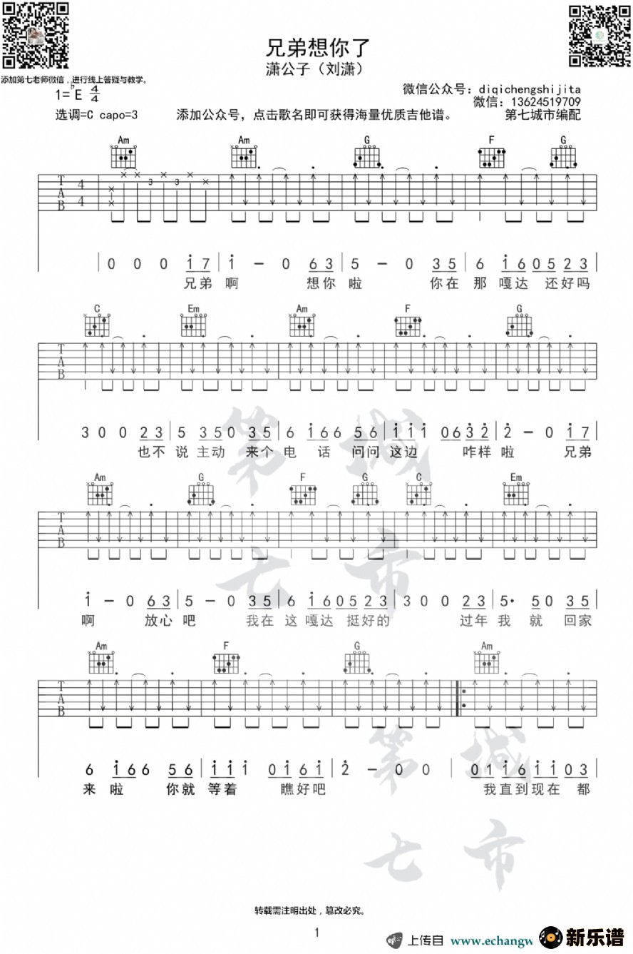 兄弟想你了 吉他谱 C调原版六线谱 抖音越南版 潇公子 刘潇