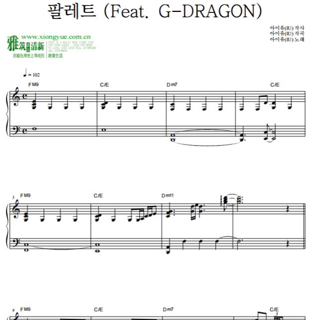 权志龙和IU李智恩 Palette原版钢琴独奏谱
