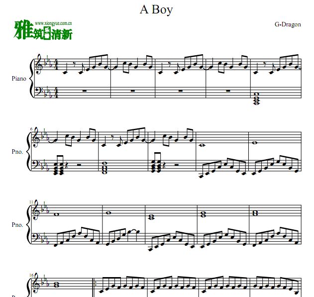 权志龙 G DRAGON MISSING YOU钢琴谱