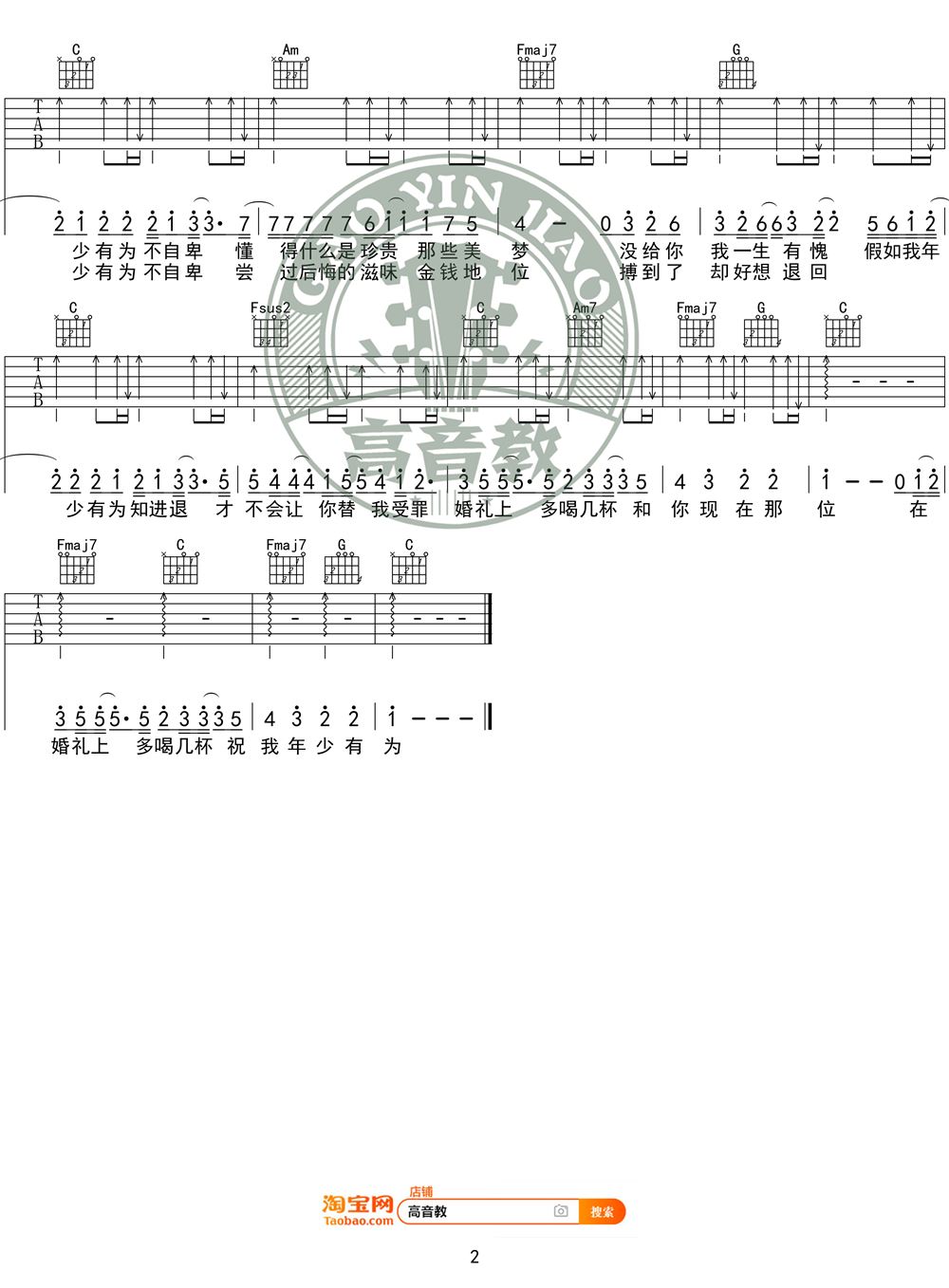 年少有为 吉他谱 C调入门版 G调精华版 李荣浩 高音教编配