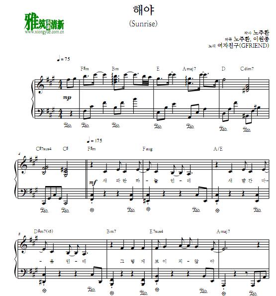 Sunrise,Sunrise钢琴谱,Sunrise钢琴谱网,Sunrise钢琴谱大全,虫虫钢琴谱下载