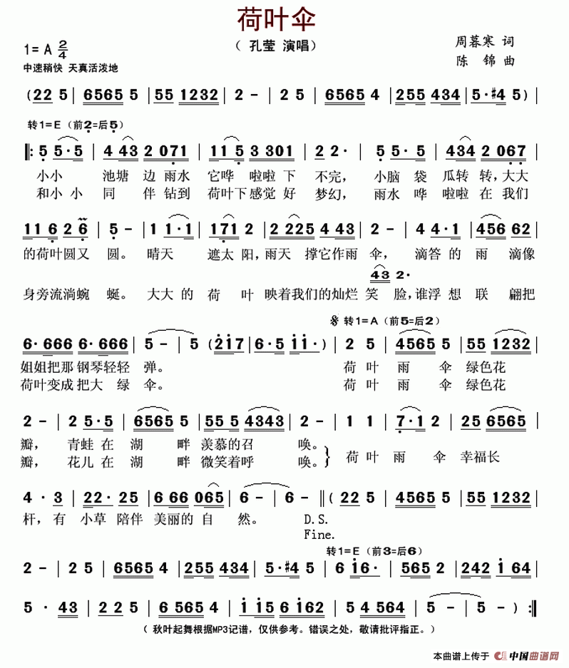 荷叶伞简谱 秋叶起舞个人制谱园地 中国曲谱网