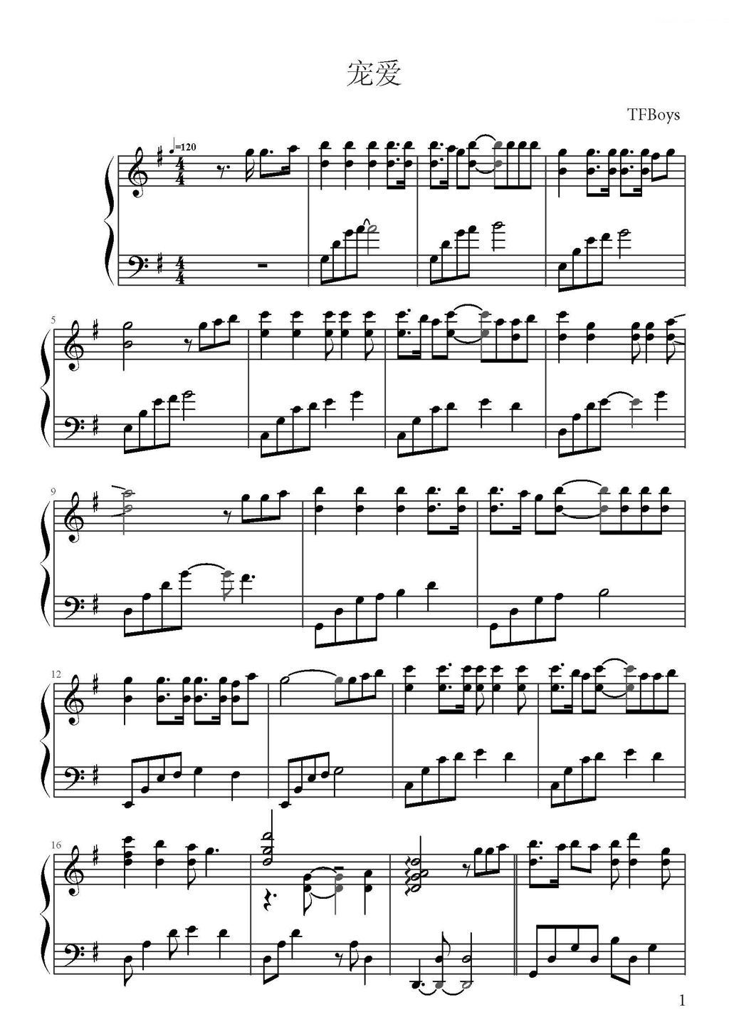 tfboys 宠爱钢琴谱??