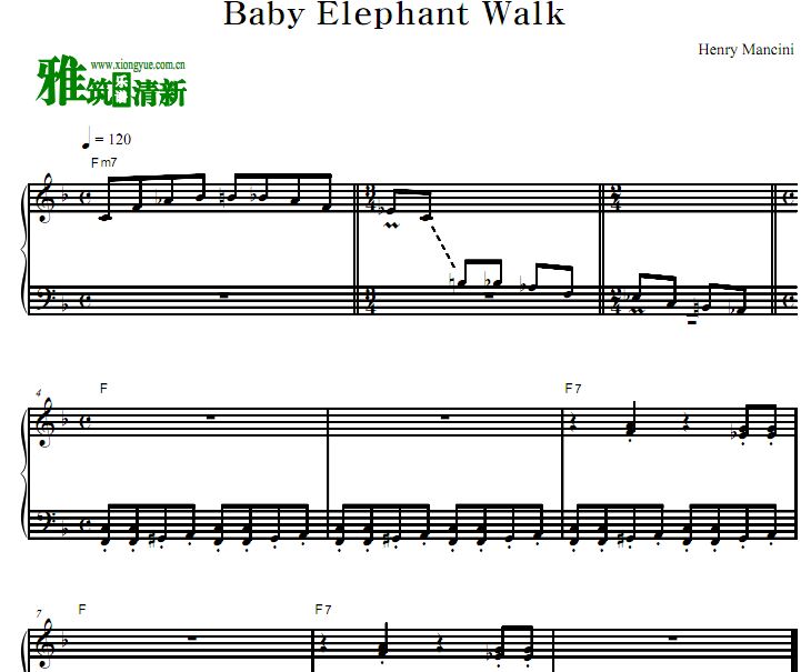 Henry Mancini Baby Elephant Walk 小象舞曲钢琴谱