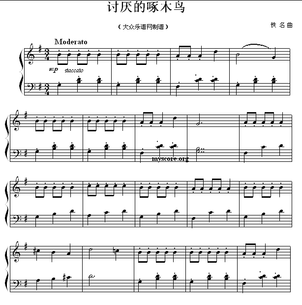讨厌的啄木鸟电子琴谱 器乐乐谱 中国曲谱网