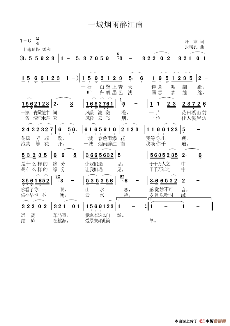 江南烟雨简谱 邱国栋词 黎毅曲 桃李醉春风个人制谱园地 中国曲谱网