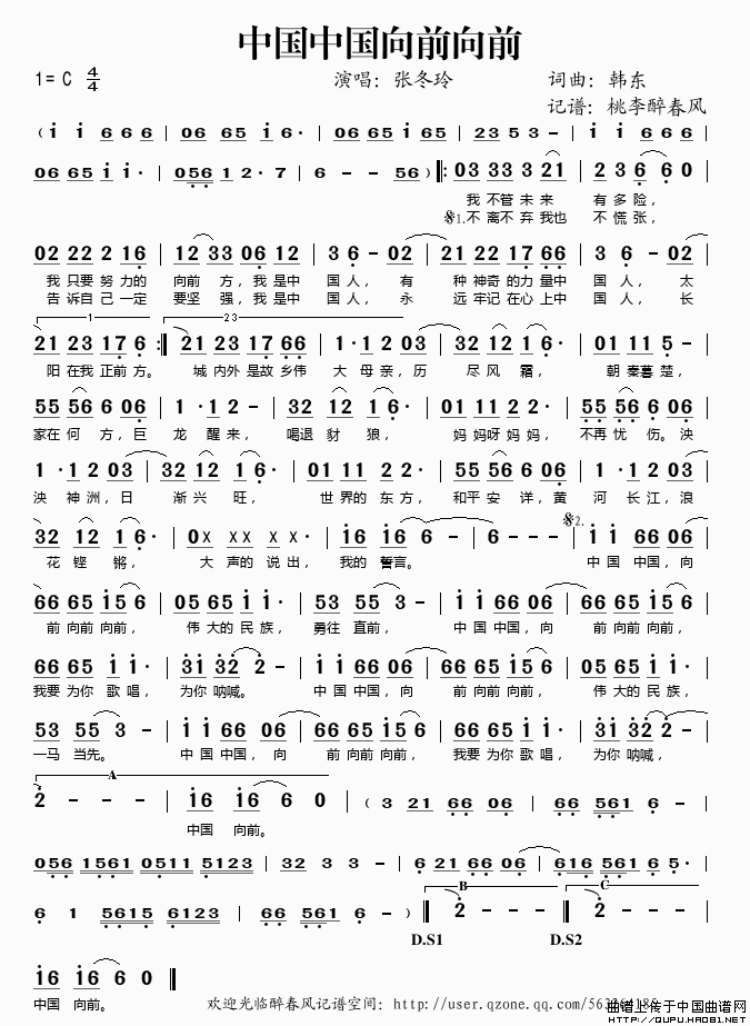 中国中国向前向前简谱 桃李醉春风个人制谱园地 中国曲谱网