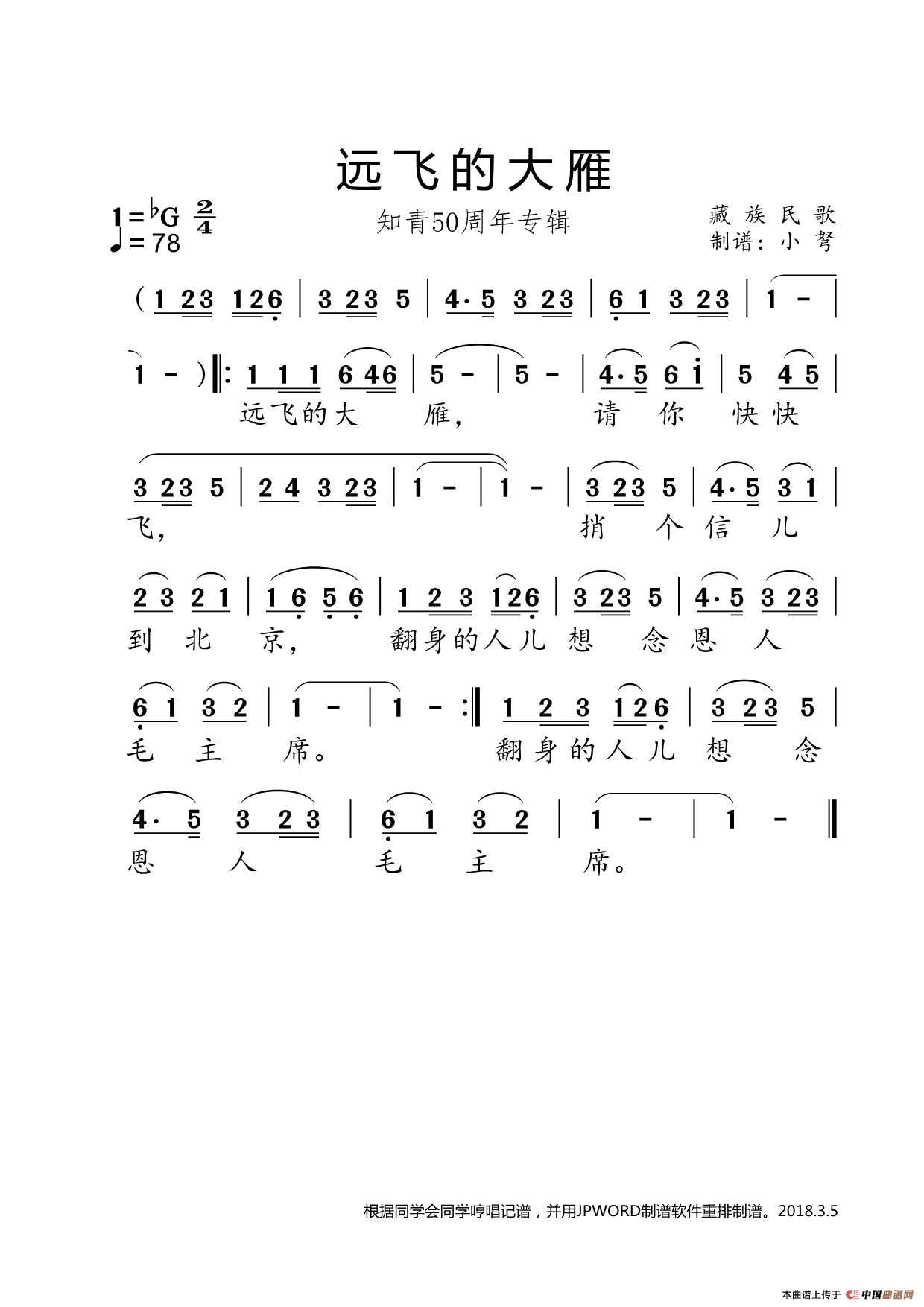 简谱远飞的大雁_远飞的大雁口简谱