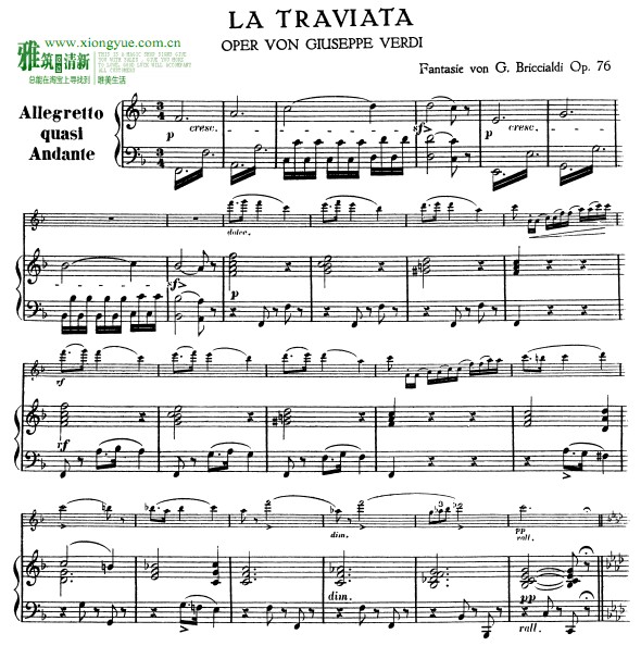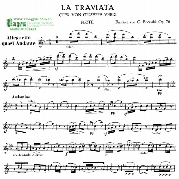 威尔第 茶花女幻想曲长笛钢琴伴奏谱