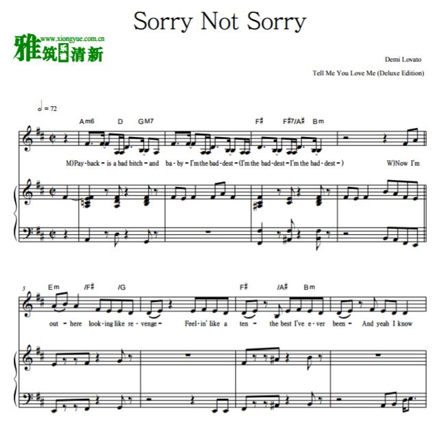 Demi Lovato Sorry Not Sorry钢琴弹唱谱
