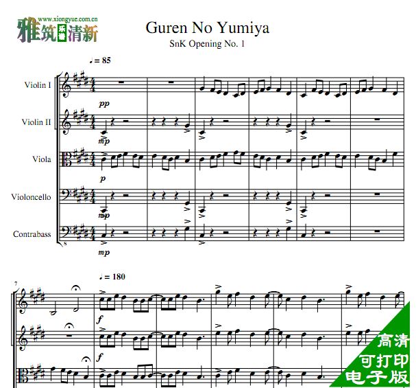 红莲の弓矢 钢琴谱 5分钟完整版钢琴谱图片格式五线谱 钢琴谱