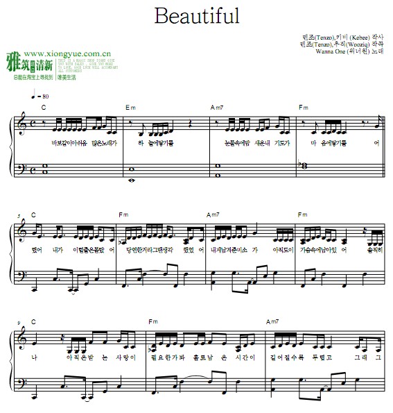 钢琴谱 Beautiful 鬼怪 插曲 Z0287