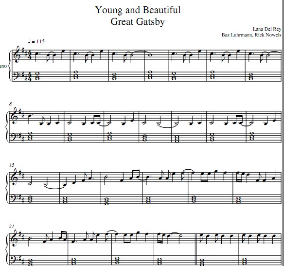 Young And Beautiful 弹唱谱 了不起的盖茨比