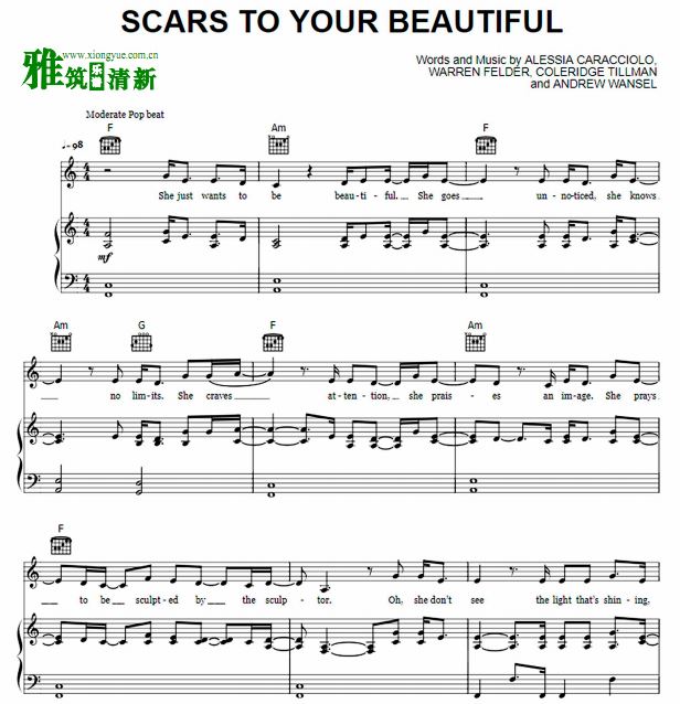 Scars To Your Beautiful 钢琴谱 Alessia Cara