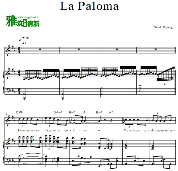 多明戈 La Paloma鸽子声乐钢琴伴奏谱 西班牙语