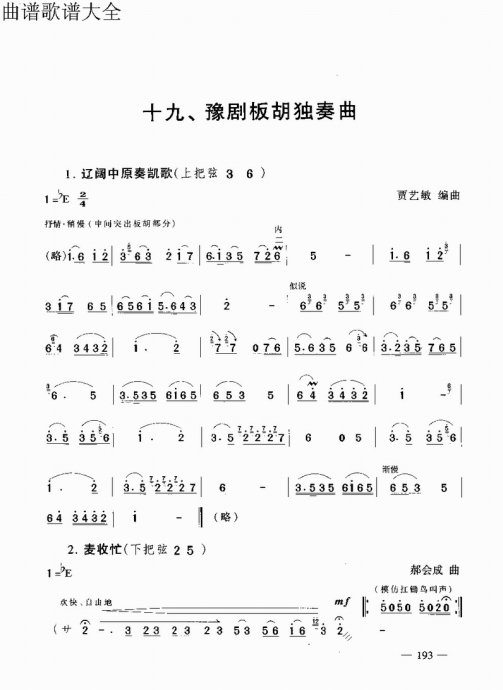 豫剧板胡简谱_豫剧板胡过门大全简谱