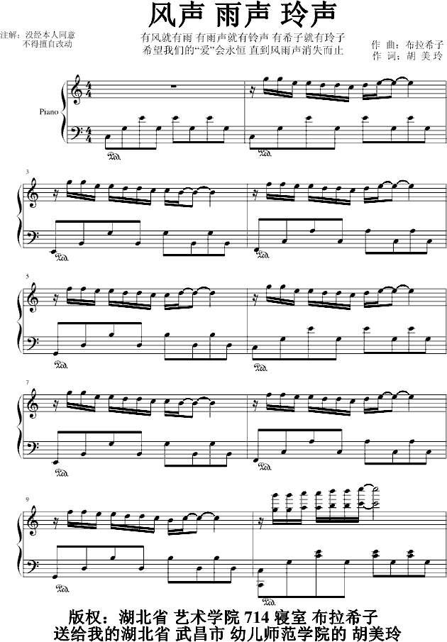 风声 雨声 铃声 朗诵版 布拉希子钢琴谱