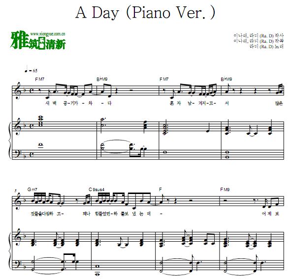 Ra.D 李度贤 A Day Piano Ver. 钢琴谱