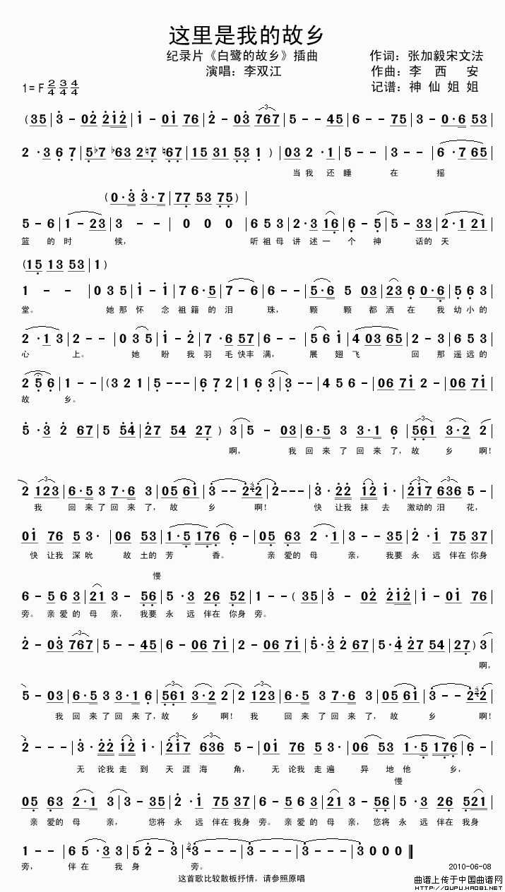 这里是我的故乡简谱 记录片 白鹭的故乡 插曲 神仙姐姐个人制谱园地 中国曲谱网