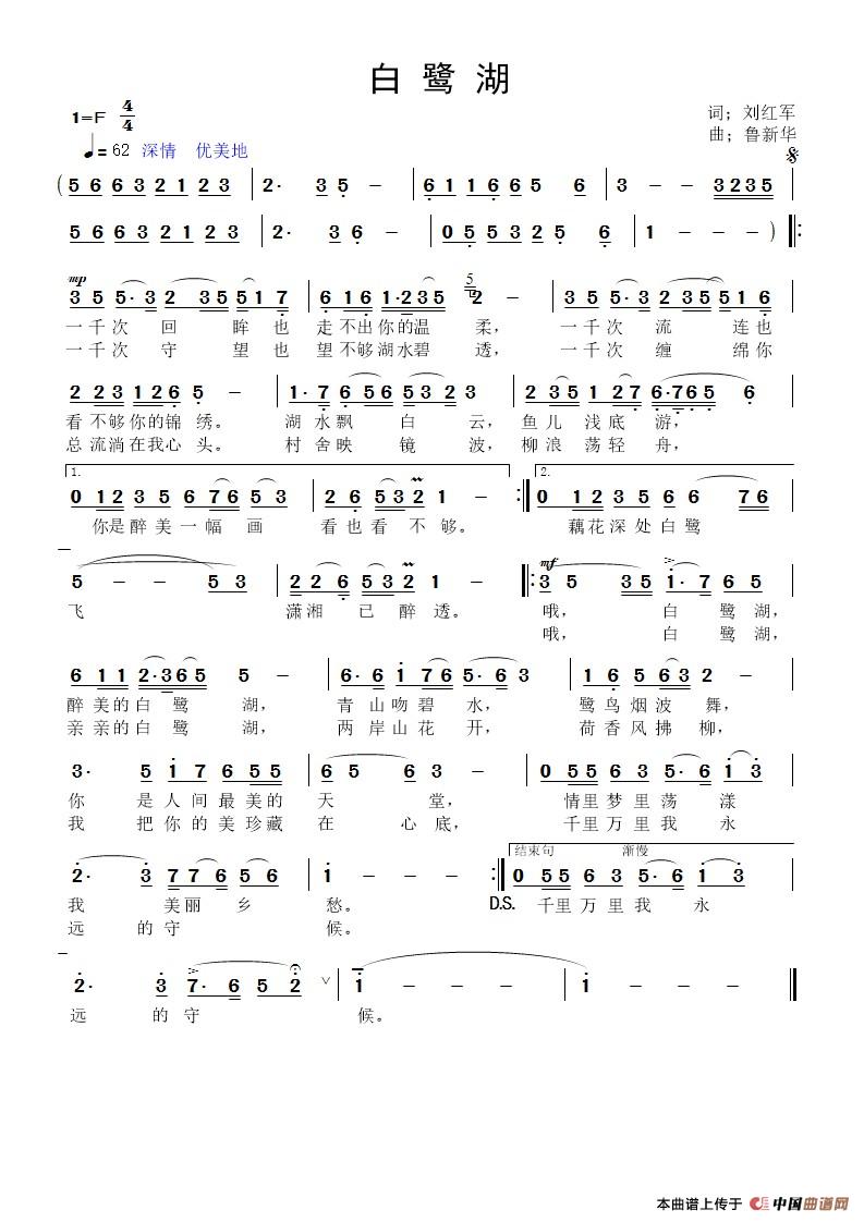 白鹭湖简谱 鲁新华原创曲谱专栏 中国曲谱网