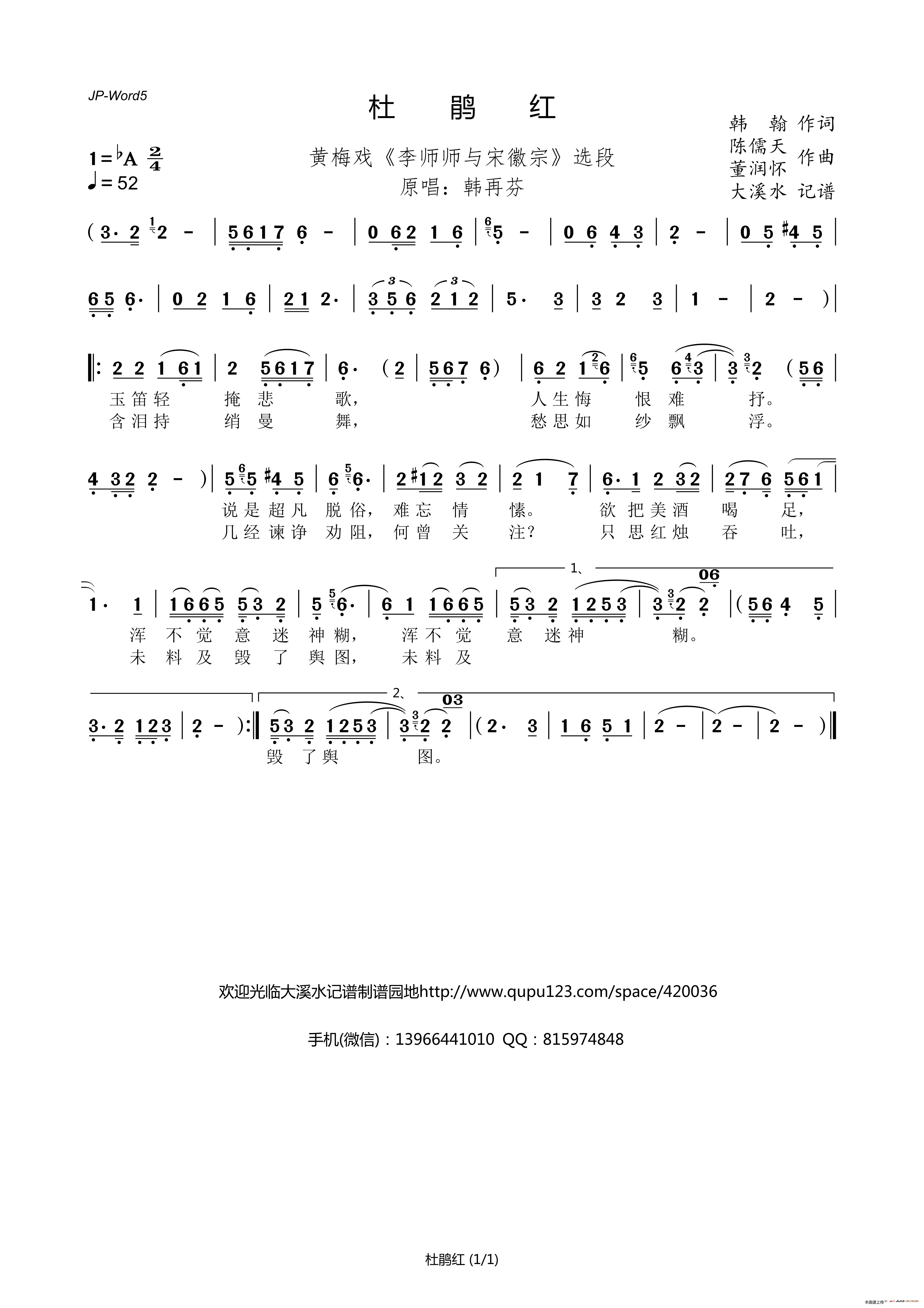 原创音乐曲谱 杜鹃花城杜鹃红 孙华 词 张朱论 曲 Powered by Discuz