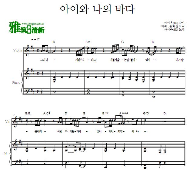 IU My sea 孩子和我的大海小提琴钢琴伴奏谱