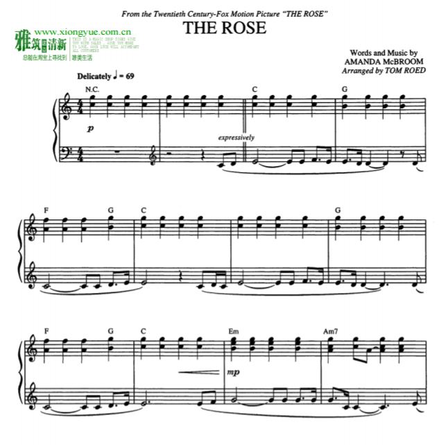 电影歌声泪痕主题曲 The Rose钢琴谱