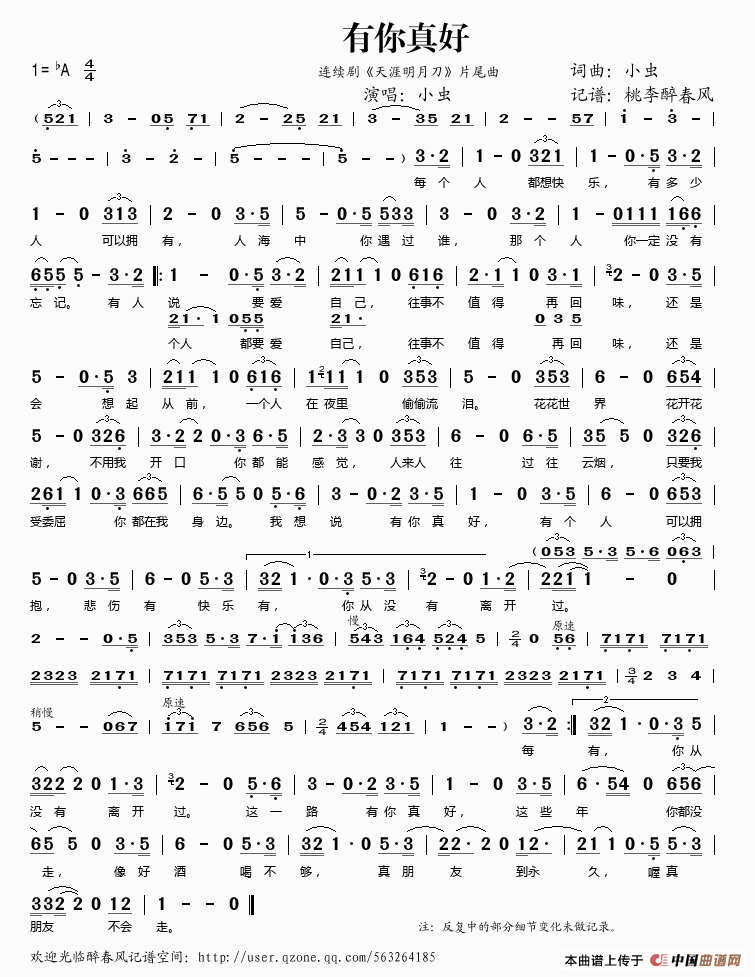 有你真好简谱 连续剧 天涯明月刀 片尾曲 桃李醉春风个人制谱园地 中国曲谱网