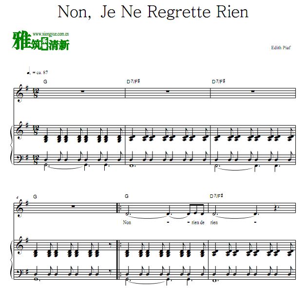 Edith Piaf Non,je ne regrette rien钢琴伴奏谱 声乐歌谱