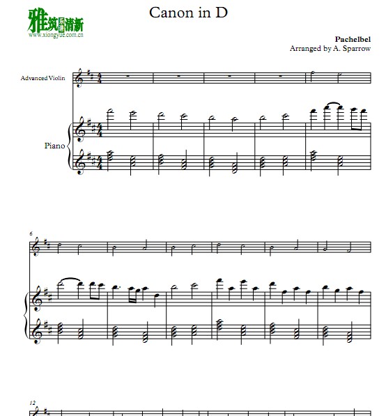 Alison Sparrow 版卡农小提琴谱 钢琴伴奏谱
