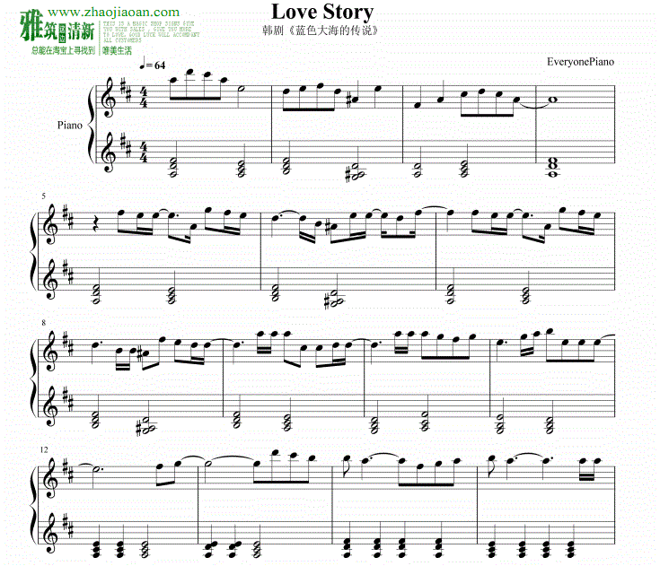 蓝色大海的传说 OST Part1 Love Story钢琴谱