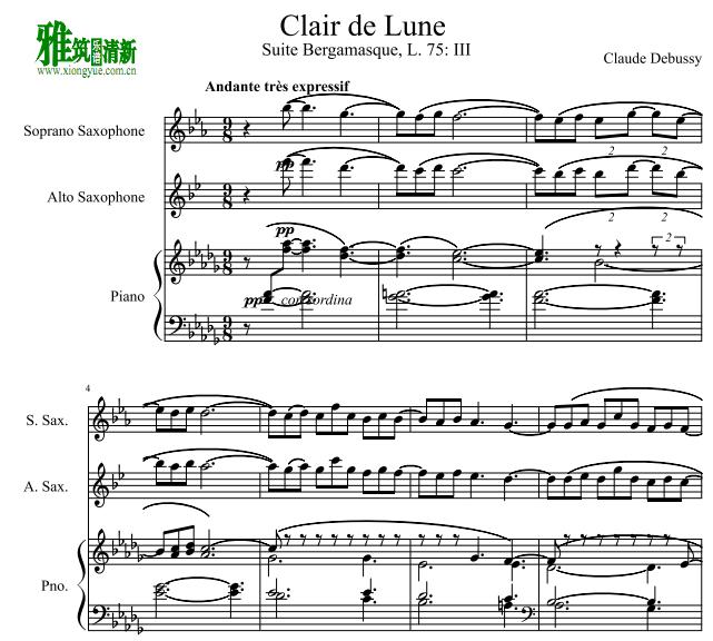 德彪西 月光萨克斯二重奏 钢琴伴奏谱