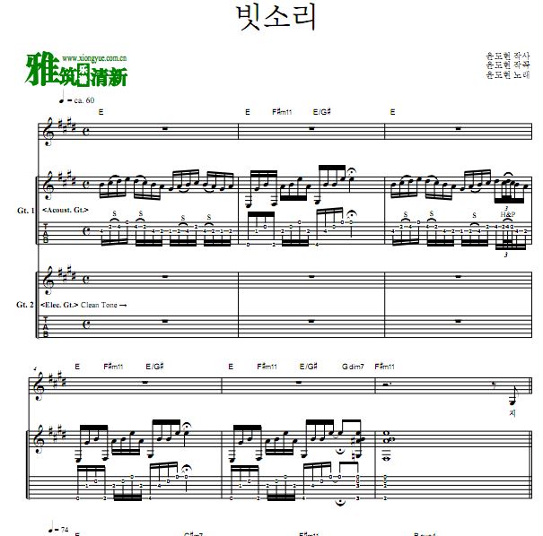 尹道贤 雨声乐队贝司谱 BASS四线谱