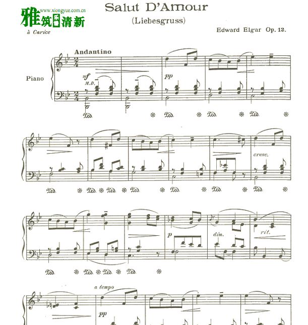 埃加尔 爱的致意ELGAR Salut d amour Op.12钢琴谱 降B调