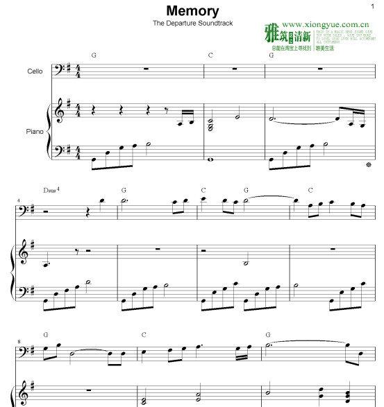 重金寻找电影 入殓师 里那段插曲 memory 的大提琴与钢琴合奏版乐谱 急求急求