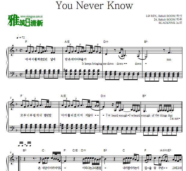 BLACKPINK You Never Know钢琴伴奏谱 歌谱