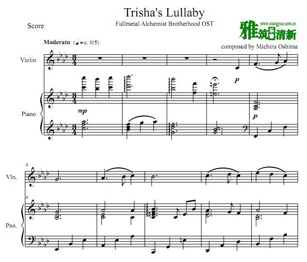 钢之炼金术师 Trisha s Lullaby小提琴钢琴二重奏谱