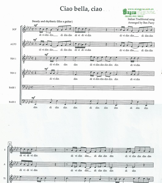 Ciao Bella, Ciao 阿卡贝拉谱