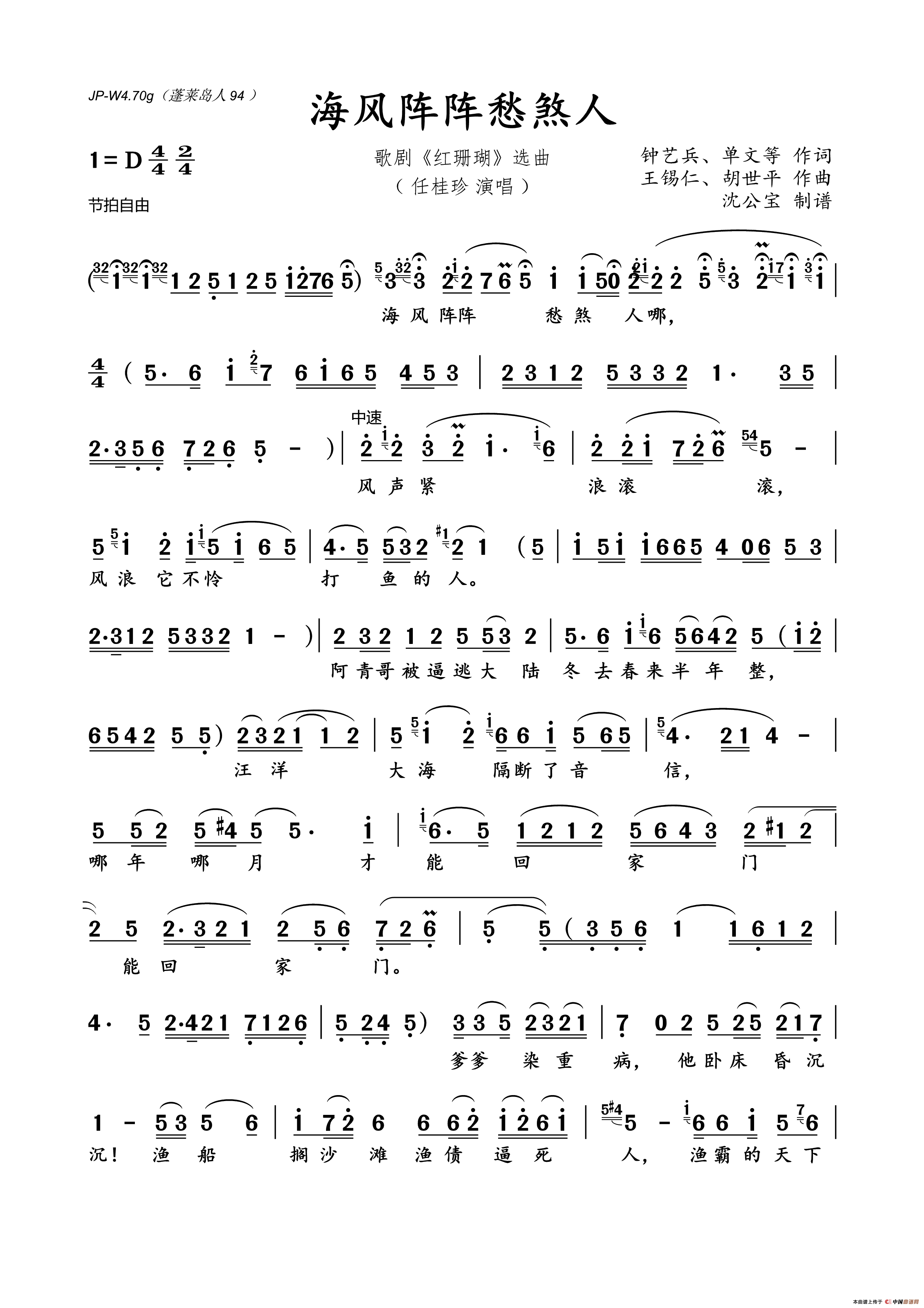 海风阵阵愁煞人简谱 歌剧 红珊瑚 选曲 sunzp个人制谱园地 中国曲谱网