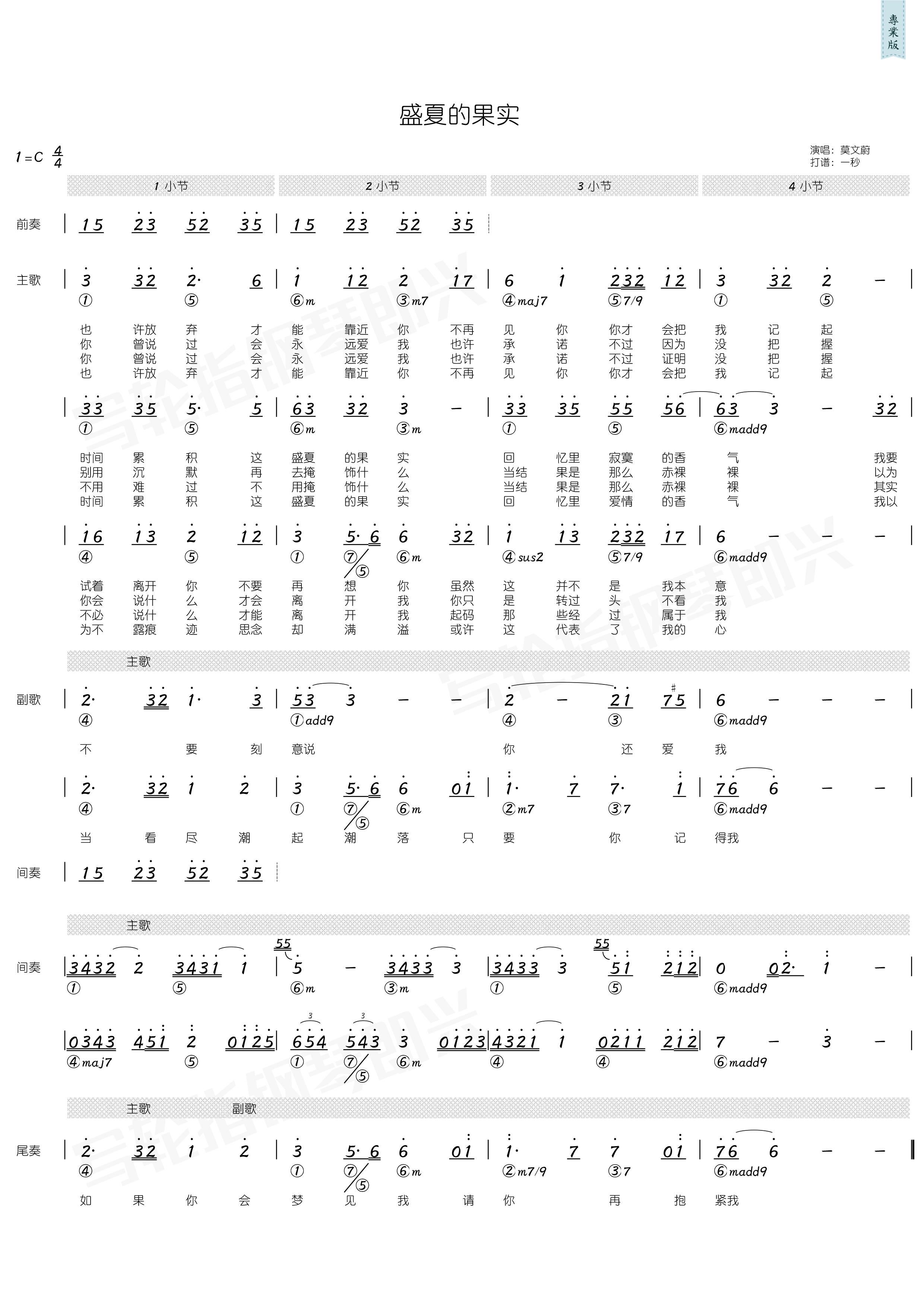 盛夏的果实 盛夏的果实爵士鼓 盛夏的果实 盛夏的果实爵士鼓简谱 盛夏的果实 盛夏的果实爵士鼓吉他谱 钢琴谱 查字典简谱网