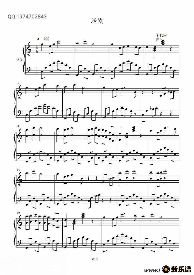 送别 李叔同版五线谱预览1 钢琴谱文件 五线谱 双手简谱 数字谱 Midi PDF 免费下载