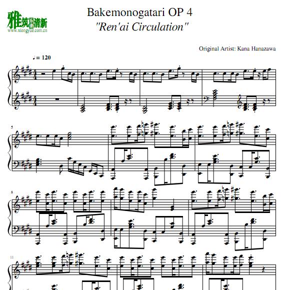 恋爱サーキュレーション钢琴谱 化物语 器乐乐谱 中国曲谱网