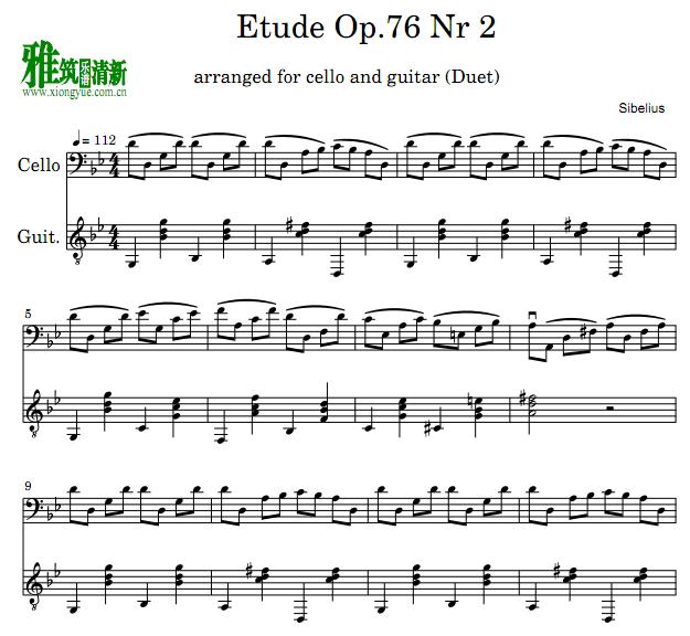 西贝柳斯 Etude Op.76 No.2 大提琴钢琴二重奏谱