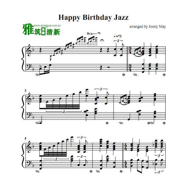 Jonny May版 Happy Birthday生日快乐歌爵士钢琴谱