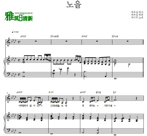 Davichi 爱的迫降OST3 晚霞Sunset钢琴伴奏谱 歌谱